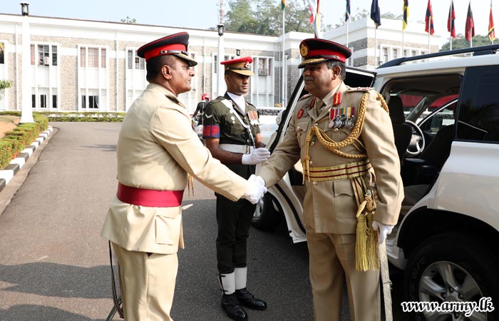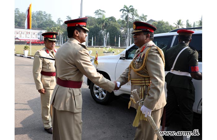 அணிவகுப்பு நிமித்தம் வருகை தந்த மேற்கு பாதுகாப்பு படைத் தளபதியை மேற்கு பாதுகாப்பு படைத் தலைமையகத்தின் சிரேஷ்ட அதிகாரியான பிரிகேடியர் ஜீனேநந்த தந்திரிவத்த அவர்கள் வரவேற்று இராணுவ சம்பிரதாய முறைப்படி அணிவகுப்பு மரியாதைகள் வழங்கப்பட்டன.