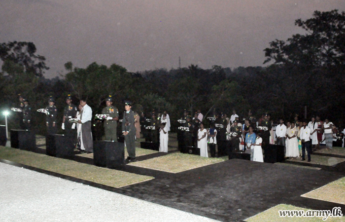 மேலும் நாட்டிற்காக உயிர் தியாகம் செய்த படை வீரர்களை நினைவு படுத்தும் முகமாக தலைமையக வளாகத்தினுன் அமைக்கப்பட்டுள்ள நினைவு தூபிகளுக்கு முன்பாக உயிர் நீத்த படைவீரர்களின் உறவினர்கள் மற்றும் இராணுவ சிரேஷ்ட இராணுவ அதிகாரிகள் மலரஞ்சலி செலுத்தி மரியாதைகளை செலுத்தினார்கள்.