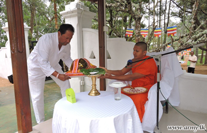 இப் பூஜையை நடத்திய பௌத்த மத தேரருக்கு மத்திய பாதுகாப்பு படைத் தலைமையகத்தினரால் அட்டபிரிகரயும் படையினரால் வழங்கப்பட்டது.
