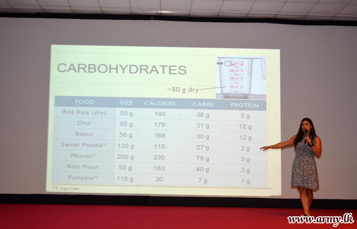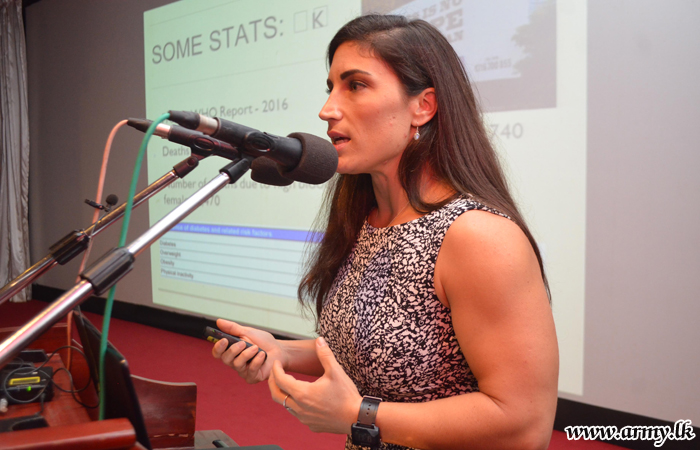 அமெரிக்கப் பயிற்சியாளர் மற்றும் சத்துணவு நிபுணர் திருமதி டிப்பனி பட்சாகிஸ் அவர்களினால் இராணுவத்தினருக்கு உடல் திடகாத்ரம் மற்றும் ஊட்டச்சத்து உணவு வகைகள் தொடர்பான கருத்துக்கள் இந்த செயலமர்வின் போது இராணுவத்தினருக்கு விரிவுரைகள் வழங்கப்பட்டன.