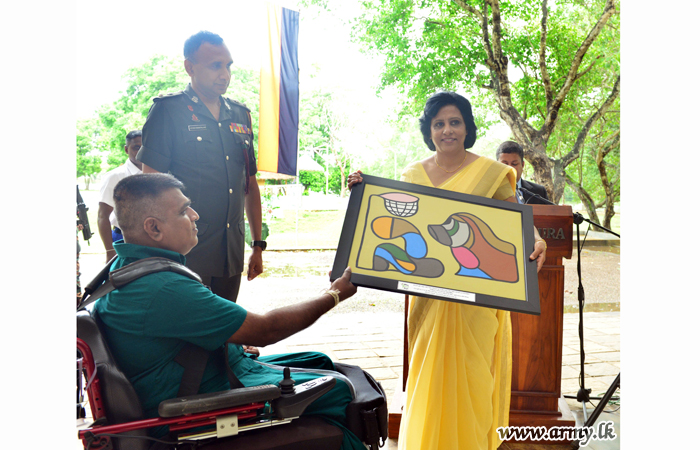 இங்கு நோய்வாய் பட்டிருக்கும் படை வீரர் ஒருவரினால் வரையப்பட்ட ஓவியமும் இந்த நிகழ்விற்கு பிரதம அதிதியாக வருகை தந்திருக்கும் சேவா வனிதா தலைவிக்கு பரிசாக இந்த படை வீரரினால் அன்பளிப்பாக வழங்கி வைக்கப்பட்டது.