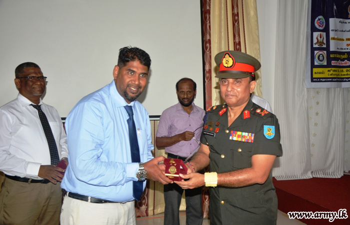 இதன் போது 22ஆவது படைத் தலைமையக தளபதியவர்கள் கல்வி தொடர்பான முக்கியத்துவத்தை மாணவர்களுக்கு எடுத்துரைத்தார். ஆத்துடன் நல்லிணக்கத்தை உருவாக்கும் நோக்கில் மேற்கொள்ளப்பட்ட இந் நிகழ்விற்கு தம்மை அழைத்தமைக்கான நன்றிகளையும் அவர் மேலும் தெரிவித்தார். இக் கருத்தரங்கை மேற்கொண்ட ஆசிரியர்களுக்கான நினைவுச் சின்னத்தையும் இத் தளபதியவர்கள் வழங்கியிருந்தார்.