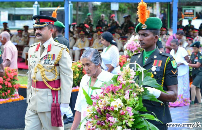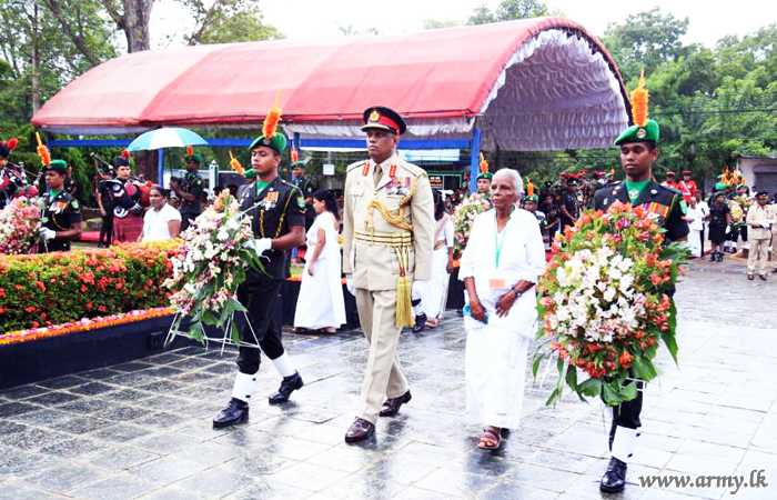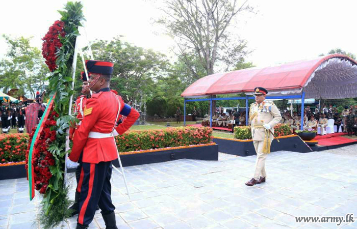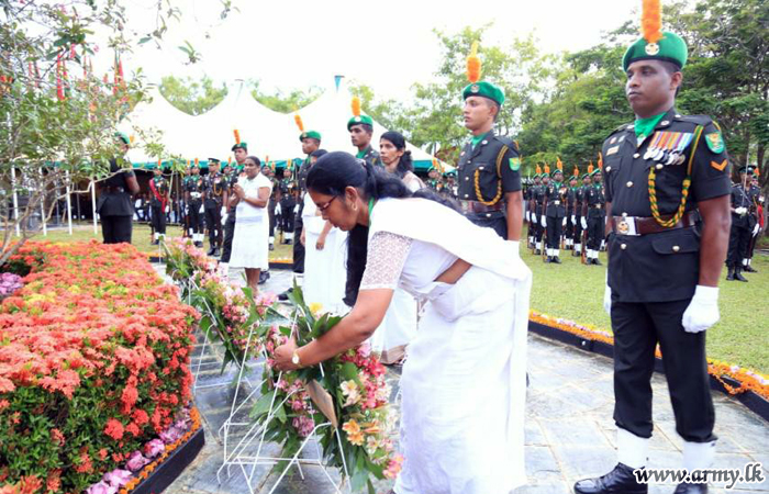 முதலில் இராணுவ தளபதி அவர்கள் கஜபா படையணி தலைமையகத்தில் அமைந்துள்ள இராணுவ நினைவு தூபிக்கு சென்று நாட்டிற்காக உயிர் தியாகம் செய்த படை வீரர்களை கௌரவிக்கும் முகமாக நினைவு தூபிக்கு சென்று மலரஞ்சலி செலுத்தி மரியாதையை செலுத்தினார். அதனை தொடர்ந்து உயிர் நீத்த இராணுவ வீரர்களின் தாய், மகள் மற்றும் உறவினர்கள் நினைவு தூபிக்கு அருகாமையில் வந்து மலரஞ்சலிகளை செலுத்தினார்.