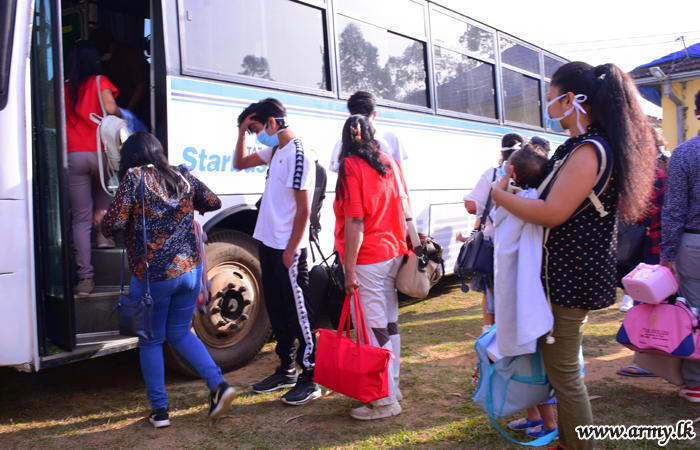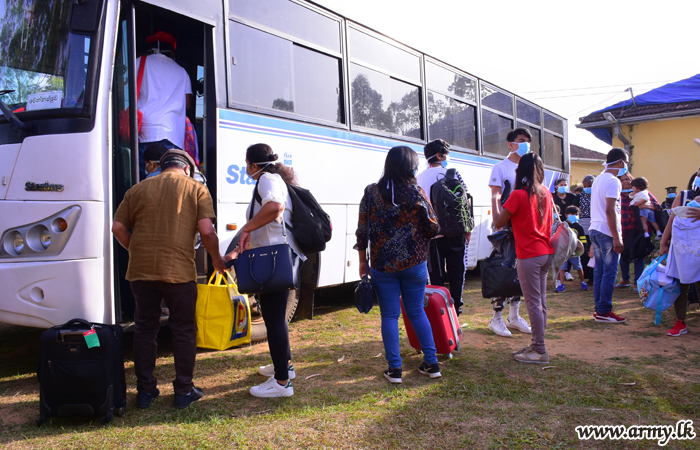 குறித்த தனிமைப்படுத்தல் நிலையங்களின் கட்டளை அதிகாரிகள், அதிகாரிகள் மற்றும் ஏனைய படையினர் உட்பட பலர், வெற்றிகரமாக இந்த தனிமைப்படுத்தல் காலத்தினை நிறைவு செய்து புறப்பட்ட அவர்களை வழியனுப்பி வைத்தனர். |
