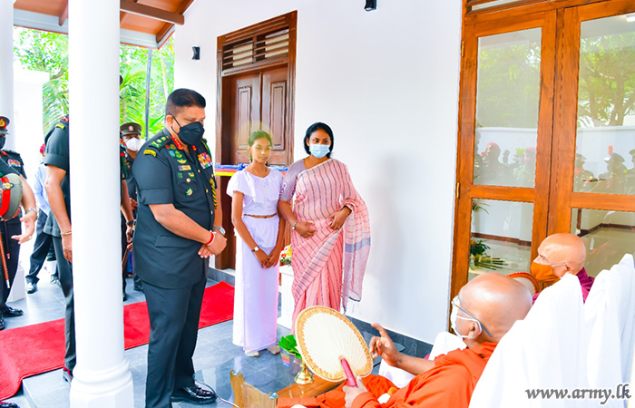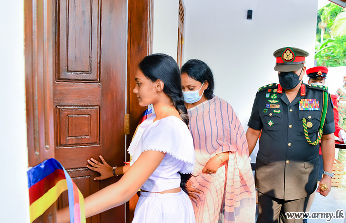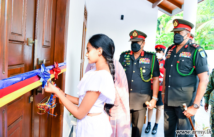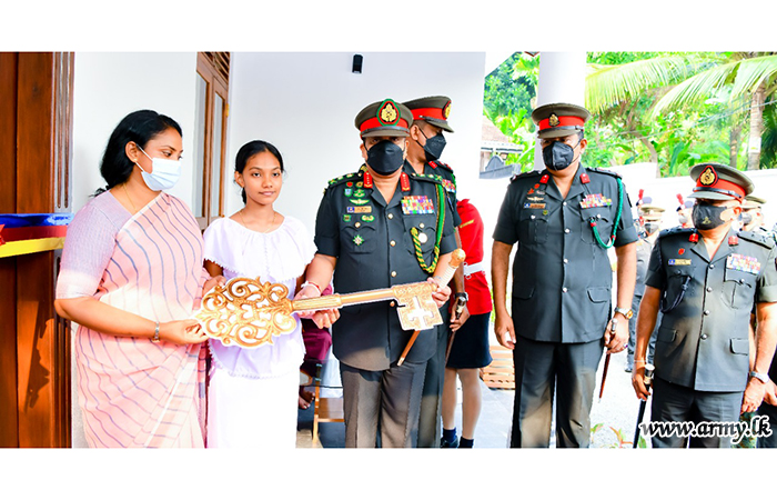 பாதுகாப்புப் பதவி நிலை பிரதானியும் இராணுவ தளபதியுமான ஜெனரல் ஷவேந்திர சில்வா அவர்களினால் போரில் உயிர்நீத்த வீரரான கனேமுல்ல கெந்தலியத்தபாலுவ பிரதேசத்தை சேர்ந்த லெப்டினன் கேணல் நிலை அதிகாரியொருவரின் மகளுக்கு இன்று (18) காலை 1.5 மில்லியன் ரூபாய் செலவில் நிர்மாணிக்கப்பட்ட புதிய வீடு வழங்கி வைக்கப்பட்டது.