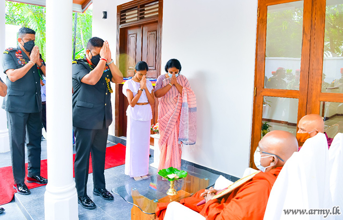 குறித்த வீட்டை வழங்கி வைப்பதற்கான நிகழ்வில் பிரதம விருந்தினராக கலந்துகொண்டிருந்த ஜெனரல் ஷவேந்திர சில்வா அவர்களுக்கு கெமுனு ஹேவா படையணியின் படைத் தளபதியினால் வரவேற்பளிக்கப்பட்டது. அதனையடுத்து மகா சங்கத்தினரின் ‘செத் பிரித்’ பாராயணங்களுக்கு மத்தியில் ஜெனரல் ஷவேந்திர சில்வா அவர்களினால் நாடா வெட்டி திறந்து வைக்கப்பட்ட வீட்டின் சாவி உயிர் நீத்த வீரரின் மகளான செத்மி அயேந்திரா நாணயக்காரவிடம் வழங்கி வைக்கப்பட்டது.