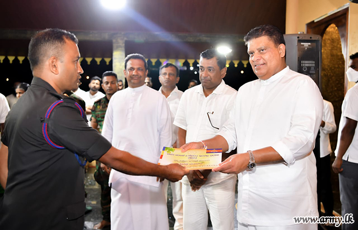 அங்கு வெசாக் கூடு அலங்கரிக்கும் போட்டியில் வெற்றி பெற்றவர்களுக்கு இராணுவத் தளபதி பரிசுகளை வழங்கினார். முதலாம் இடத்தை இலங்கை பீரங்கி படையணியின் படையினரும், 2ஆம் இடத்தை இலங்கை பொறியியலாளர் படையணியின் படையினரும், 3ஆம் இடத்தை இலங்கை கவச வாகண படையணியின் படையினரும் பெற்றுக்கொண்டனர்.