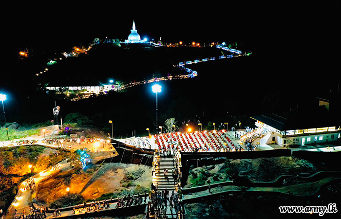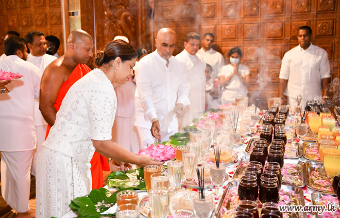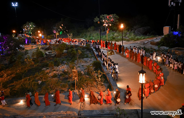 அன்றைய பிரதம அதிதி ஜெனரல் சவேந்திர சில்வா அவர்கள் கோஷங்களுக்கு மத்தியில் புனித 'பெண்வீதிம' சடங்கில் இணைந்த பௌத்த தளமான முழு விகாரை வளாகத்தையும் மகாசங்க சமூகத்தின் பழங்கால மரபுகளின்படி சுமார் 200 பௌத்த பிக்குகள் ஒன்றுகூடி 'சாசன' வில் வைத்து வழிபட்டனர். அதற்கு முன்னதாக, பிரதம விருந்தினர், நினைவுச் சின்னத்தில் உள்ள ‘சுகந்த குடியா’விற்கு காணிக்கைகளை வழங்கினார். இதேபோன்று, இராணுவ நிறைவேற்று பணிப்பாளர் நாயகம் மேஜர் ஜெனரல் ஸ்வர்ண போதோட்ட, ஆளனி நிர்வாக பணிப்பாளர் நாயகம் மேஜர் ஜெனரல் உத்ய குமார மற்றும் சில மூத்த அதிகாரிகள் அதே நேரத்தில் இணைந்து ‘எசிடிசி மஹா சேயா’ (டகோபா) க்கு காணிக்கைகளை வழங்கினர்.