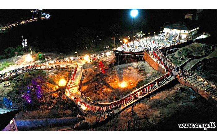 சில நிமிடங்களுக்குப் பிறகு, நூற்றுக்கணக்கான பாரம்பரிய மேளக்காரர்கள் சம்பிரதாய முழக்கம் எழுப்பியதுடன் மற்றும் மகா சங்க உறுப்பினர்கள் 'செத்பிரித்' ஓதத் தொடங்கியதனையடுத்து , பாதுகாப்புப் பதவி நிலை பிரதானியும் இராணுவத் தளபதியுமான ஜெனரல் சவேந்திர சில்வா, நன்கொடையாளர்களுடன் இணைந்து கூரகல 'அசிடிசி ஷைகமுனி மஹாசேயா' என்ற இடத்தில் உள்ள தங்க சிகரத்தினை திறந்து வைத்தார்.