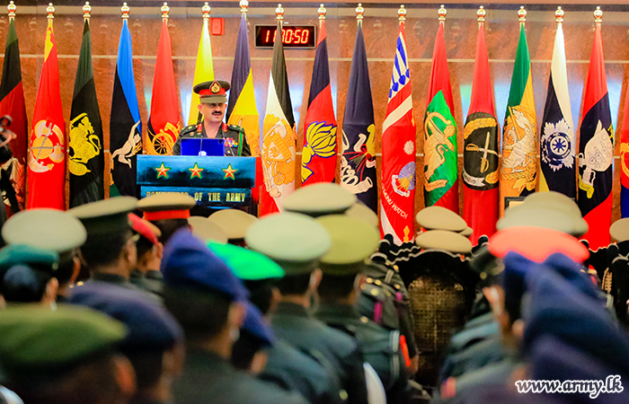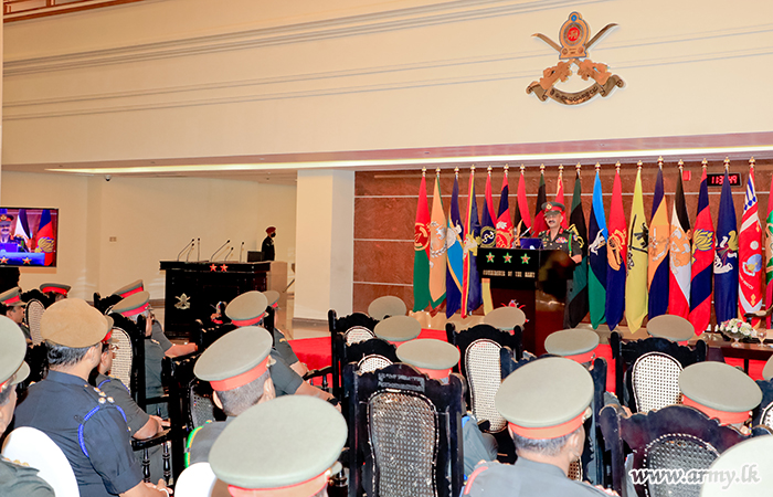 லெப்டினன் ஜெனரல் விக்கும் லியனகே அவர்கள் இலங்கை இராணுவத்தின் 24 வது தளபதியாக கடமைகளை பொறுப்பேற்றுக்கொண்டதன் பின்னர், தனது எதிர்காலத் திட்டமிடல்கள் மற்றும் தொலைநோக்குச் செயற்றிட்டங்கள தொடர்பில் இராணுவ தலைமையகத்தின் படையினருக்கு விளக்கமளிப்பதற்கான உரையொன்றினை இராணுவ தளபதி இன்று (16) காலை நிகழ்த்தினார்.