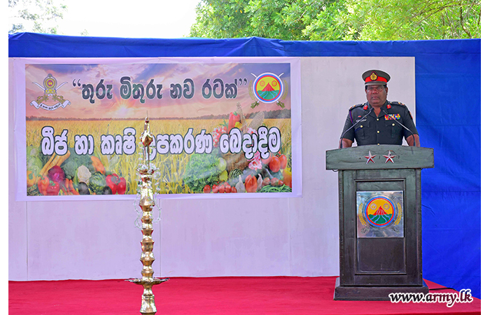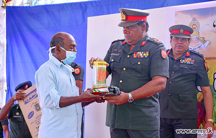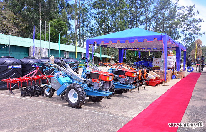 மத்திய பாதுகாப்புப் படை தலைமையகத்தின் கீழ் 6 மாவட்டங்களில் உள்ள தொலைதூர பகுதி விவசாயிகளை உள்ளடக்கும் திட்டத்தில், இரண்டு கை டிராக்டர்கள், இரண்டு மினி சாகுபடி டிராக்டர்கள், விவசாய உதிரி பாகங்கள், தெளிப்பு இயந்திரங்கள், நீர் விசையியக்கக் குழாய்கள், விதைகள் போன்றவை வேளாண்மை மற்றும் கால்நடைகள் பணிப்பகத்தினூடாக குறித்த நிகழ்வின் பிரதம அதிதியான மத்திய பாதுகாப்புப் படைத் தளபதி மேஜர் ஜெனரல் கீர்த்திகொஸ்தா அவர்களினால் விநியோகிக்கப்பட்டன. குறித்த இயந்திரங்கள் மற்றும் ஏனையவற்றின் மொத்த பெறுமதி ரூ .5 மில்லியனுக்கும் மேலானவையாகும்.இந்த நிகழ்வில் குறித்த டிராக்டர்களை பகிர்வு அடிப்படையில் பயன்படுத்தக்கூடிய ஆறு மாவட்டங்களில் உள்ள 104 விவசாயிகளின் பிரதிநிதிகள் கலந்து அவைகளை பெற்றுக்கொண்டனர்.