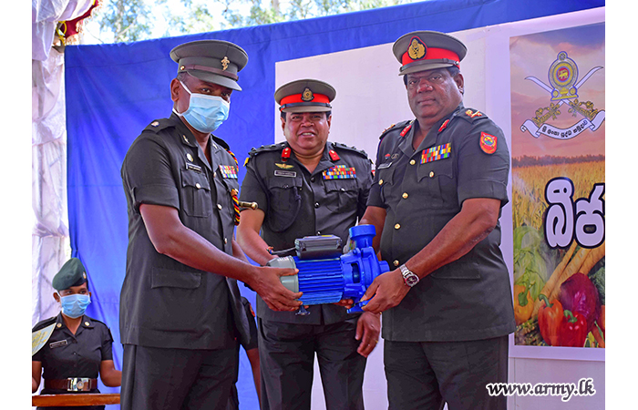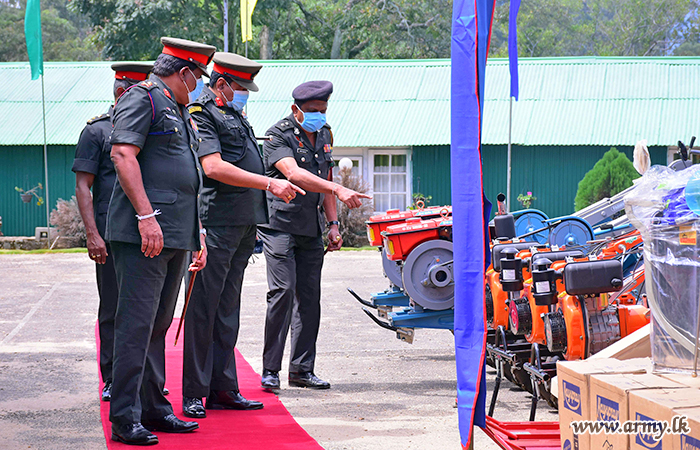 அருகில் உள்ள விவசாய சமூகங்கள் குறித்த இயந்திரங்களை வாடகை அடிப்படையில் பெற்றுக் கொள்வதில் சிரமத்தினை எதிர்நோக்குவதனையிட்டு அதிமேதகு ஜனாதிபதியின் சௌபாக்ய தெக்ம' கொள்கைக்கு அமைய அவர்களுக்கு பயிர்செய்வதற்கான ஏதாவது ஒரு சாத்தியமான ஒத்துழைப்பினை வழங்குமாறு நாடு முழுவதும் உள்ள அனைத்து இராணுவ பிரிவுகளுக்கும் இராணுவத் தளபதியவர்கள் அறிவுறுத்தினார்.