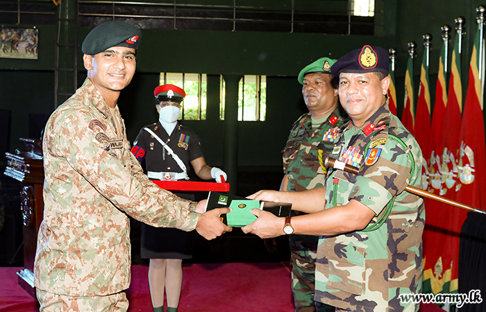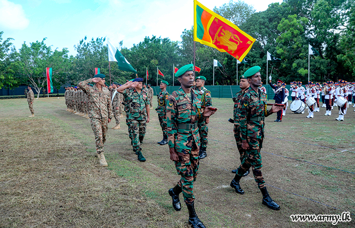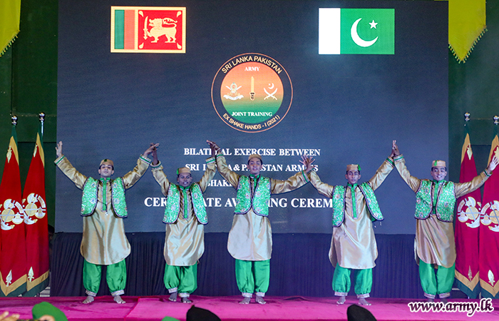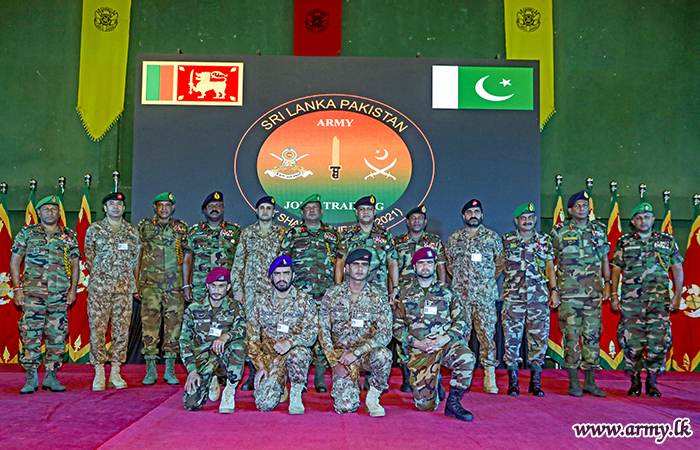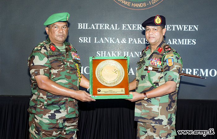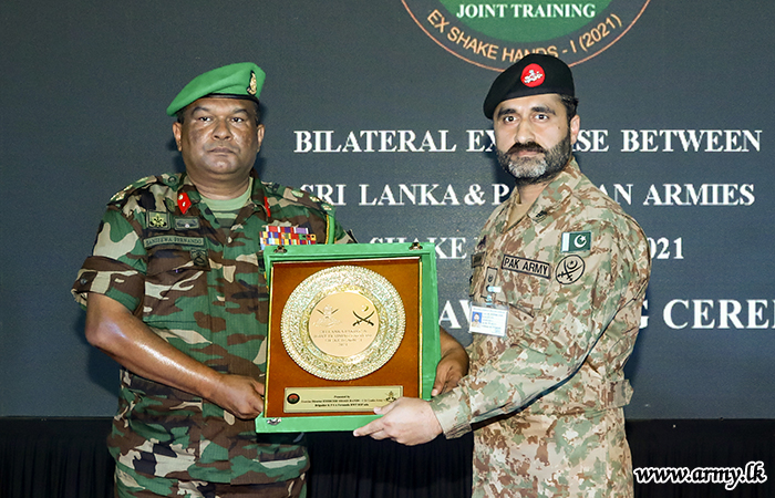 அன்றைய பிரதம விருந்தினர் அனைத்து படையினருக்கும் பங்கேற்பு சான்றிதழ்களையும் நினைவு பரிசுகளும் வழங்கினார். பயிற்சி பணிப்பாளர் பிரிகேடியர் சஞ்சீவ பெர்னாண்டோ நன்றி உரையாற்றுவதற்கு குழு படங்கள் எடுத்தல் பாகிஸ்தான் மற்றும் இலங்கை படையினர் நல்லெண்ணம் மற்றும் சகோதரத்துவத்தின் பாராட்டுகளையும் நினைவுச் சின்னங்களையும் பரிமாறிக்கொண்டனர்.