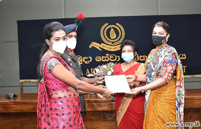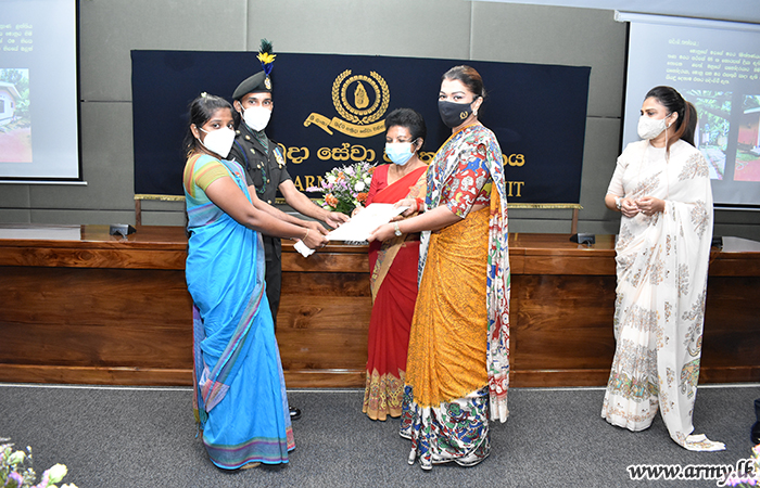 உடல் ஊனமுற்ற நிலையில் சொந்த காணியில்லாமலிருந்த ஆறு போர் வீரர்களுக்கான காணி உறுதிப் பத்திரங்கள் வழங்கல், காயமடைந்த போர் வீராங்கனை ஒருவருக்கான புதிய வீடு வழங்குதல், இராணுவ அங்கவீன விளையாட்டு வீரர்களுக்கான விளையாட்டு உபகரணங்கள் வழங்கல் போன்ற பல நன்கொடைகள் வழங்கும் நிகழ்வு இராணுவ சேவை வனிதையர் பிரிவு தலைமையகத்தில் வியாழக்கிழமை (8) சேவை வனிதையர் பிரிவின் தலைவி திருமதி சுஜீவா நெல்சன் தலைமையில் நடைபெற்றது.