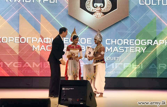 அத்தோடு சனிக்கிழமை (4) மாலை நடைபெற்ற இறுதி நாள் நிகழ்வில் ரஷ்ய இராணுவக் குழுவுடன் இணைந்து இலங்கை இராணுவ நடனக் குழு அரங்கேற்றிய நிகழ்வில் இலங்கை இராணுவ நடனக்குழு பிரத்தியேகமாக தெரிவு செய்யப்பட்டிருந்தமை சிறப்பம்சமாகும். அத்துடன் இராணுவ நடனக் கலைஞர்கள் நடனப் போட்டியில் (டூயட்) 3 வது இடத்தையும், பாடல் போட்டியில் (ரஷ்ய பாடல்) 3 வது இடம் மற்றும் சிறந்த காணொலிக்காக 3 வது இடத்தையும் பெற்றுக்கொண்டனர். இலங்கை அணி சார்பில் 3 அதிகாரிகள் மற்றும் 9 சிப்பாய்கள் மேற்படி நிகழ்வில் பங்கேற்றனர். இந்நிகழ்வில் இராணுவ வாத்திய இசை மற்றும் நடனக்கலை பணிப்பாளர் பிரிகேடியர் ரோஹன பெஞ்சமின் அவர்களும் பங்கேற்றமை குறிப்பிடத்தக்கதாகும்.