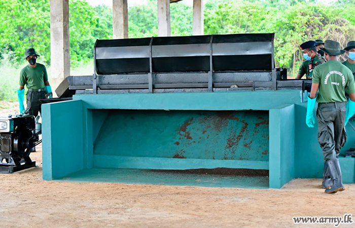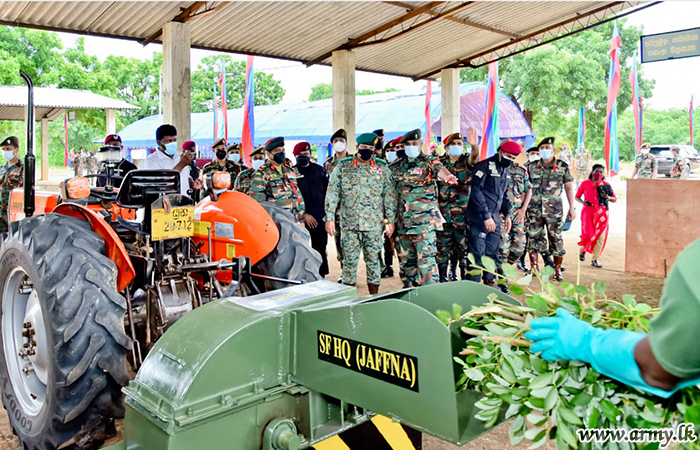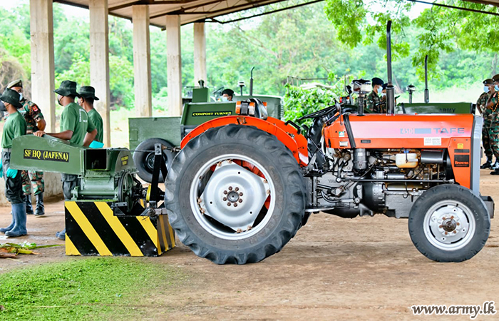 யாழ். பாதுகாப்பு படைத் தலைமையகத்தின் கீழ் சேவையாற்றும் படையினரால் உர உற்பத்தி செயற்பாடுகளை இலகுவாக்கு வகையில் நான்கு புதிய இயந்திரங்களை தயாரிக்கப்பட்டுள்ளமையால், இந்த திட்டத்தை தொடர்ந்தும் முன்னெடுப்பதற்காக அதிக விலையுடைய இயந்திரங்களை கொள்வனவு செய்ய வேண்டிய அவசியம் இல்லாமல் போயுள்ளது. அந்த புதிய இயந்திரங்களில் 5 வது பொறியியல் சேவை படையணியின் சிப்பாய்களால் வழங்கப்பட்ட தொழில்நுட்ப உதவியுடன் யாழ். பாதுகாப்பு படைத் தலைமையகத்தின் வழங்கல் பிரிவு பதவி நிலை அதிகாரி I லெப்டினண் கேணல் பீடீஎல்ஏசீ சிறிசேன அவர்களினால் தயாரிக்கப்பட்ட சேதன பசளை உற்பத்திக்காக பயன்படுத்தப்படும் மூலப்பொருட்களை அரைக்கும் இயந்திரம் மற்றும் உர உற்பத்திக்கான மூலப்பொருட்களை ஒன்றுசேர்க்கும் இயந்திரம் என்பனவும் அடங்குகின்றமை குறிப்பிடத்தக்கது.