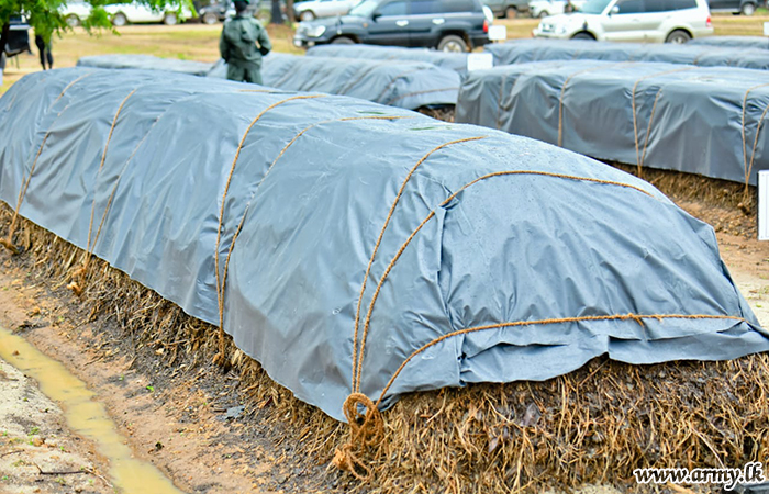 அதிமேதகு ஜனாபதியவர்களின் கொள்கைத்திட்டத்திற்கமைய மேற்படி பகுதிகளில் வாழும் விவசாயிகள் மற்றும் விவசாய நடவடிக்கைகளில் ஈடுபடுகின்ற படையினரின் பயன்பாட்டிற்காக இராணுவ தளபதியின் எண்ணக்கருவுக்கமைவான “துரு மித்துரு நவ ரட்டக்” செயற்றிட்டத்தின் கீழ் சேதன பசளை உற்பத்தி மேற்கொள்ளப்பட்டது. அதற்கமைவாக கிழக்கு பாதுகாப்பு படைத் தலைமையக படையினரால் உற்பத்தி செய்யப்பட்ட 86.9 தொன் சேதன பசளை ‘லக் பொஹொர’ நிறுவனத்திடம் கையளிக்கப்பட்டது.