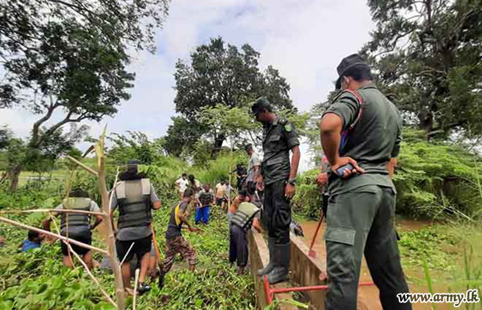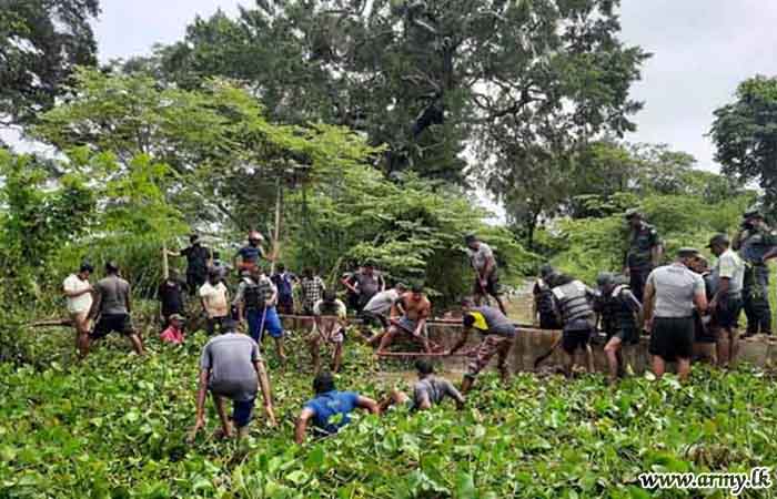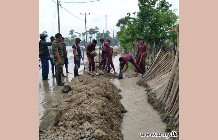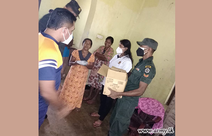 14 வது படைப்பிரிவின் கீழுள்ள 143 பிரிகேடின் 14 சிப்பாய்கள் தங்களது கட்டளை அதிகாரியின் அறிவுரைக்கமைய பாதிக்கப்பட்ட கிராம மக்களுக்கு உதவிகளை வழங்க விரைந்ததோடு, வௌ்ள பாதிப்புக்கு இலக்காகியிருந்து சமைப்பதற்கான வசதிகள் இன்றி தவித்த 35 க்கும் மேற்பட்ட குடும்பங்களை பாதுகாப்பாக இடங்களுக்கு வெளியேற்றினர்.