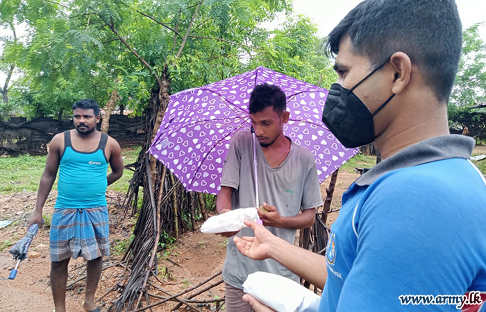 அதேநேரம், செவ்வாய்க்கிழமை (9) புத்தளதில் ஏற்பட்ட அதிக மழைவீழ்ச்சி காரமாண பாதிக்கப்பட்ட தாழ்நிலப் பகுதிகளில் வசிக்கும் மக்களுக்கு 300 மேற்பட்ட உணவுப் பொதிகளை படையினர் வழங்கினர்.