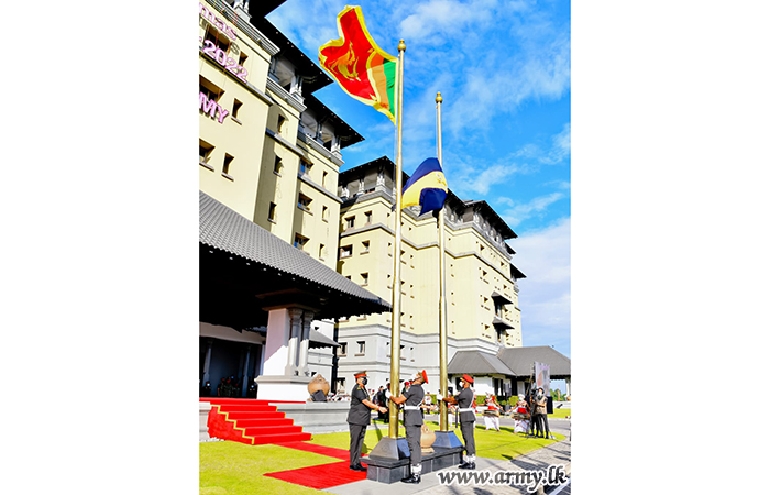பாதுகாப்புப் பதவி நிலைப் பிரதானியும் இராணுவத் தளபதியுமான ஜெனரல் ஷவேந்திர சில்வாவின் வருகையுடன் இன்றைய நிகழ்வுகள் ஆரம்பமாகின. இந்நிகழ்வின் ஆரம்பத்தை குறிக்கும் வகையில், சிரேஷ்ட அதிகாரிகளின் அணிவகுப்புடன் ஜெனரல் ஷவேந்திர சில்வா மற்றும் இராணுவப் பதவி நிலைப் பிரதானி மேஜர் ஜெனரல் விக்கும் லியனகே ஆகியோர் முறையே தேசியக் கொடியையும் இராணுவக் கொடியையும் ஏற்றி வைத்தனர்.