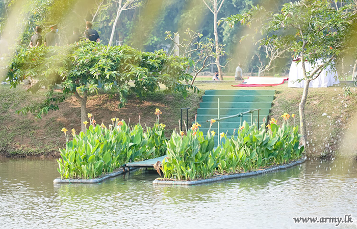 சுமார் இரண்டு வருடங்களுக்கு முன்னர் தனது மரநடுகை, மற்றும் அழகுபடுத்தும் செயற்திட்டத்தின் மூலம் வீதியின் கரடுமுரடான மற்றும் தரிசு பாதைகளை பயன்பாட்டு நிலைக்கு மாற்றுவதற்கு காரணியாக இருந்த பாதுகாப்புப் பதவி நிலைப் பிரதானியும் இராணுவத் தளபதியுமான ஜெனரல் ஷவேந்திர சில்வா அவர்கள், இராணுவ வழங்கள் கட்டளைத் தளபதி மேஜர் ஜெனரல் இந்து சமரகோனின் அழைப்பின் பேரில் ஈரநில தாவரங்கள் மற்றும் நீர்க்குழாய் தாவரங்கள் உள்ளடங்களான மிதக்கும் தீவின் ஆரம்ப நிகழ்வில் கலந்து கொண்டார்.