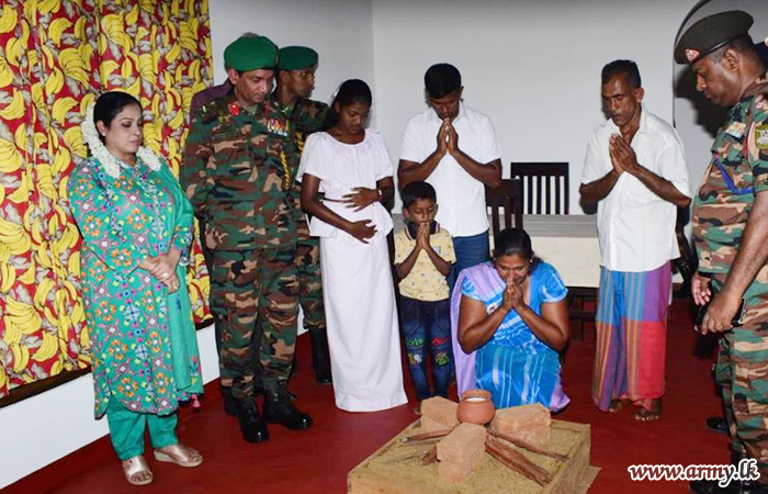 241 வது பிரிகேட் தளபதி பிரிகேடியர் சந்திர அபேகோன் அவர்களின் வழிகாட்டுதலின்படி, 241 வது பிரிகேடின் கீழ் பணியாற்றும் 11 வது இலங்கை தேசிய பாதுகாப்பு படையணியின் படையினர் இந்த புதிய வீட்டை நிர்மாணிப்பதற்கான பொறியியல் மற்றும் தொழில்நுட்ப திறன்கள் மற்றும் மனிதவளத்தை வழங்கினர். மேலும் பயனாளியான திருமதி தீபானி சண்டலங்க அவரது குடும்ப உறுப்பினர்கள் கஷ்டங்களுக்கு மத்தியில் இதுவரை சரியான தங்குமிடம் அல்லது வருமான வழி இல்லாமல் இருந்துள்ளனர்.