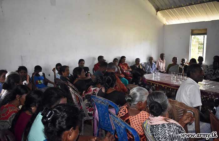 முல்லைத்தீவு பாதுகாப்பு படைத் தலைமையக தளபதி மேஜர் ஜெனரல் எம்.கே ஜயவர்தன ஆர்எஸ்பீ யூஎஸ்பீ என்டியூ, 68 வது காலாட் படைப்பிரிவின் தளபதி மேஜர் ஜெனரல் எஸ் கஸ்தூரிமுதலி ஆர்எஸ்பீ என்டிசிபீஎஸ்சி மற்றும் 593 வது பிரிகேட் தளபதி பிரிகேடியர் எச்வீஏசோமவீர ஆர்டப்ளியுபீ ஆர்எஸ்பீ யுஎஸ்பீ ஆகியோர் இச் சமூகம் சார்ந்த நலத்திட்டத்தை ஒருங்கிணைப்பதற்கு தேவையான வழிகாட்டுதலை வழங்கினர்.