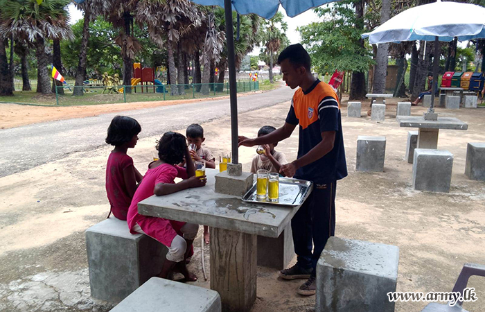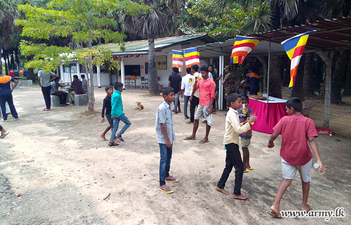 இதேவேளை, 522 வது காலாட் பிரிகேட் தளபதியின் வழிகாட்டலின் கீழ், வெசாக் கொண்டாட்டங்களை ஒட்டி, கடைக்காடு பகுதியில் குளிர்பான தான நிகழ்வு ஒன்றை 522 வது காலாட் பிரிகேட் படையினர் ஏற்பாடு செய்திருந்தனர்.. இந்த நிகழ்வில் குறிப்பிடத்தக்க பொதுமக்களின் பங்களிப்பும் காணப்பட்டது.