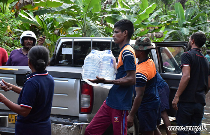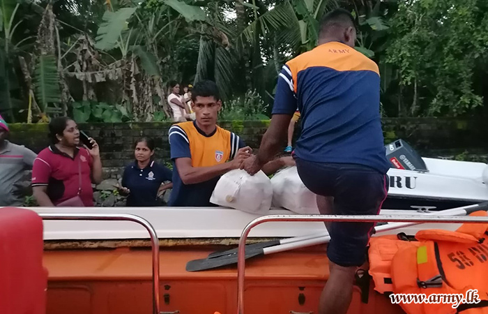 இந்த நடவடிக்கையின் போது, மில்லனிய பிரதேசத்தில் இடம்பெயர்ந்த மக்களுக்கு 9 வது கெமுனு ஹேவா படையணி படையினர் ஒரு படகைப் பயன்படுத்தி உலர் உணவுகளை விநியோகித்ததுடன், உதவிகளையும் வழங்கினர்.