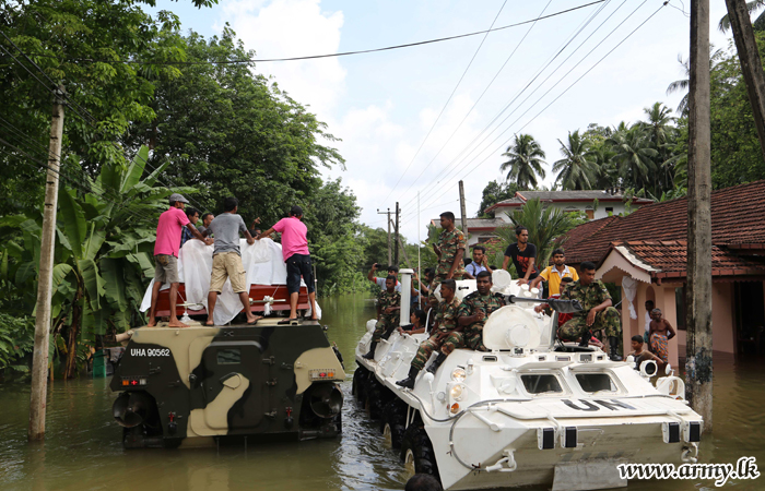இராணுவ தளபதி இந்த பிரதேசங்களுக்கு நேரடியாக சென்று இராணுவத்தினருடன் உறையாடி சிறந்த அறிவுறுத்தல்களை வழங்கி இராணுவத்தினரை உற்சாகப்படுத்தினார். 24 மணித்தியாலயம் நடைபெற்ற இந்த மீட்பு பணிகளில் இராணுவத்தினர் 2600 க்கு அதிகமான பொதுமக்களை மீட்டதுடன் களவானை மற்றும் பிடபெதர பிரதேசத்தில் வெள்ளம் மற்றும் மண்சரிவு விபத்தில் பாதிப்புக்கு உள்ளான 3600 பேருக்கு இராணுவத்தினரால் உணவுகள் வழங்கப்பட்டது.