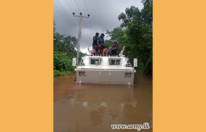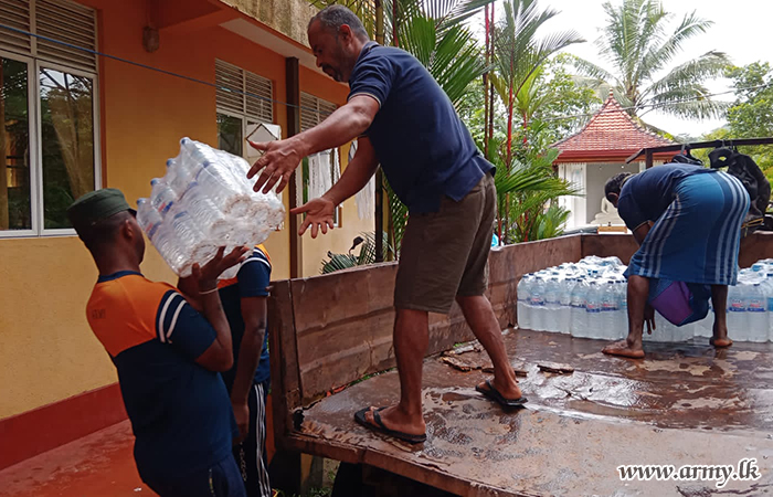 மேலும், வெள்ளத்தினால் பாதிக்கப்பட்ட மக்களுக்கு உடனடி நடவடிக்கைக்காக யூனிகோன் மற்றும் டபிள்யூஎம்இசட் இராணுவ வாகனங்கள் களுத்துறை,மாத்தறை மற்றும் காலி பகுதிகளுக்கு அனுப்பி வைக்கப்பட்டுள்ளன. இதேவேளை, அக்குரஸ்ஸ, மாலிம்பட, நெலுவ மற்றும் சாலாவ பிரதேசங்களில் இடம்பெயர்ந்த மக்களுக்கு உணவு வழங்குவதற்காக இராணுவத்தினர் ஏற்கனவே பிரதேசவாசிகளின் உதவியுடன் சமையல் வசதிகளை ஏற்படுத்திக் கொடுத்துள்ளதுடன், குடிநீர் மற்றும் மருத்துவ வசதிகளை வழங்குவதற்கான முயற்சிகளும் மேற்கொள்ளப்பட்டு வருகின்றன.