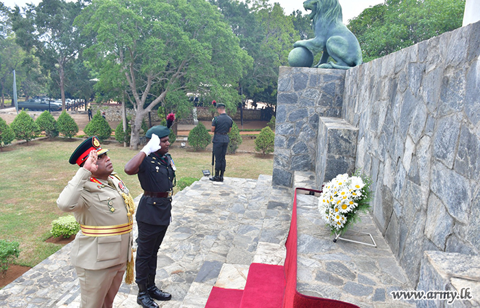 சம்பிரதாயமான இராணுவ பிரியாவிடை நிகழ்வு பாதுகாவலர் அறிக்கையிடல் மரியாதையுடன் ஆரம்பமானது. பின்னர் அவர் போர் வீரர்களின் நினைவுத்தூபியில் வீரமரணமடைந்த வீரர்களுக்கு அஞ்சலி செலுத்தியதுடன், அணிவகுப்பு சதுக்கத்தில் அணிவகுப்பு மரியாதையினை ஏற்றுக்கொண்டார்.