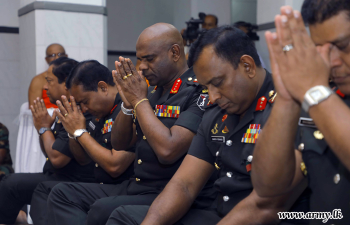 மேலும் இவ் அனுசாசன தேரர்கள் தமது ஆசீர்வாதங்களை நாட்டிற்கான தமது உயிரைத் தியாகம் செய்து போரிட்ட இராணுவ வீரர்களுக்கான வழங்கினர். அத்துடன் இந் நிகழ்வின் காலை வேளையில் அட்ட பிரிக்கர மற்றும் பிர்க்கர வகைகளாக பௌத்த மத வழிபாட்டு பொருட்கள் மஹா சங்க அவர்களிற்கு ஒப்படைக்கப்பட்டது.