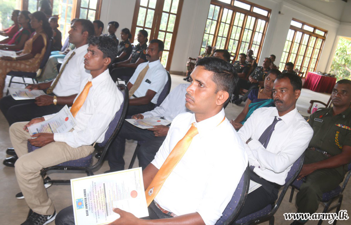 இந்த பயிற்சியின் நிறைவு விழாவில் பயிற்சிகளை மேற்கொண்ட இந்த சிவில் பாதுகாப்பு திணைக்கள படையினர்களுக்கு 57 ஆவது படைப் பிரிவின் படைத் தளபதி சான்றிதழ்களை வழங்கி கௌரவித்தார்.