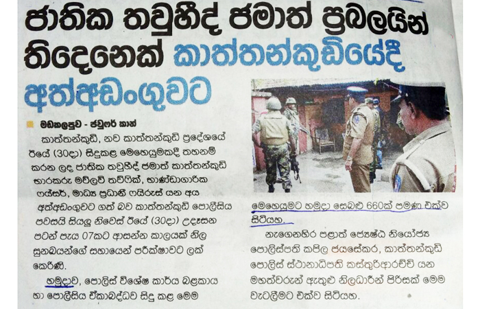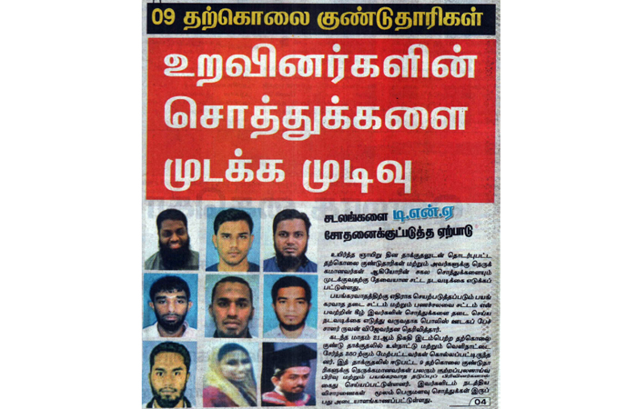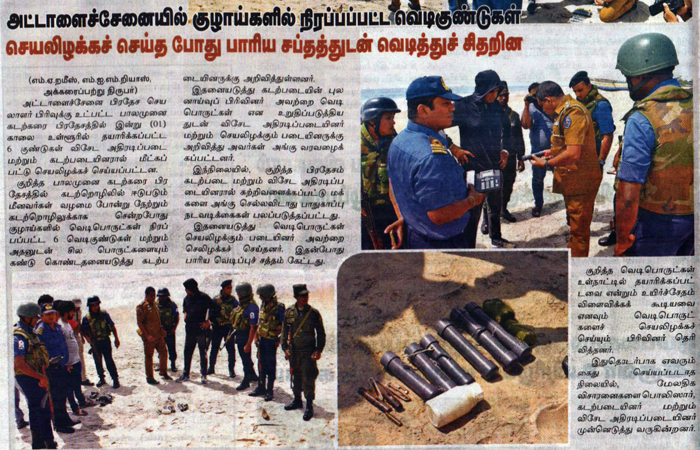 இராணுவம், கடற்படை, விமானப்படை மற்றும் பொலிஸாரினால் மேற்கொள்ளப்படும் தொடர்ச்சியான தேடுதல் மற்றும் தெளிவான நடவடிக்கைகள் தொடர்பாக பத்திரிகைகளில் கடந்த சில நாட்களாக தொடர்ச்சியாக அறிக்கைகள் உள்ளூர் நிருபர்களால் வெளியிடப்பட்டுள்ளன.