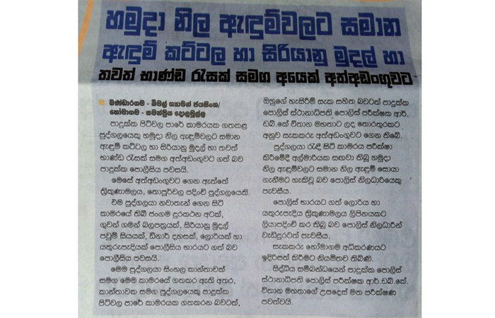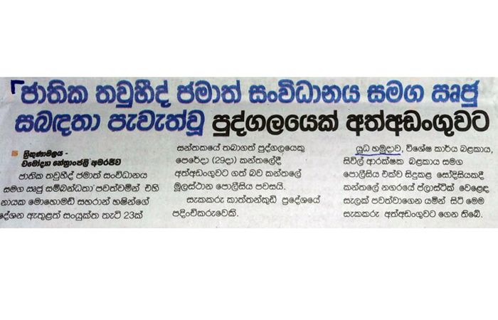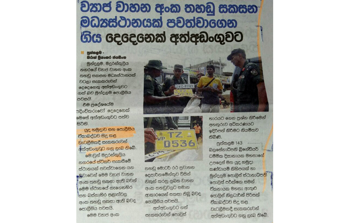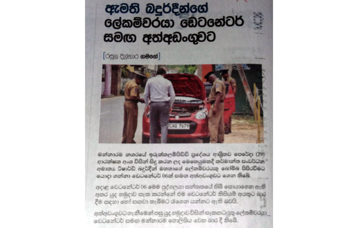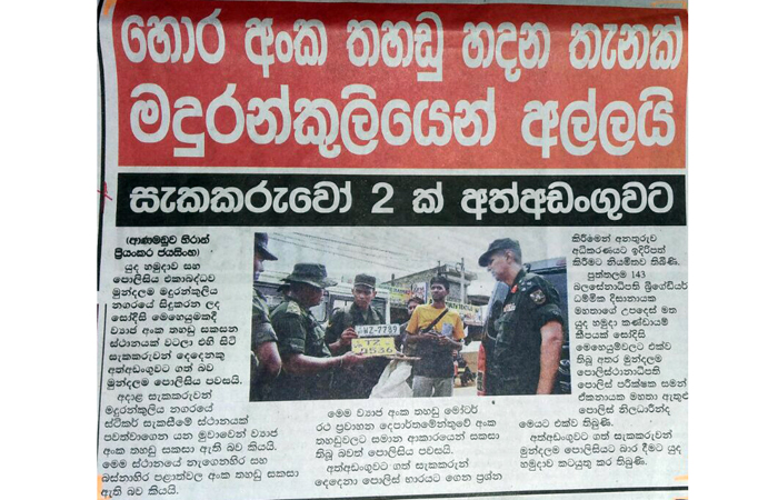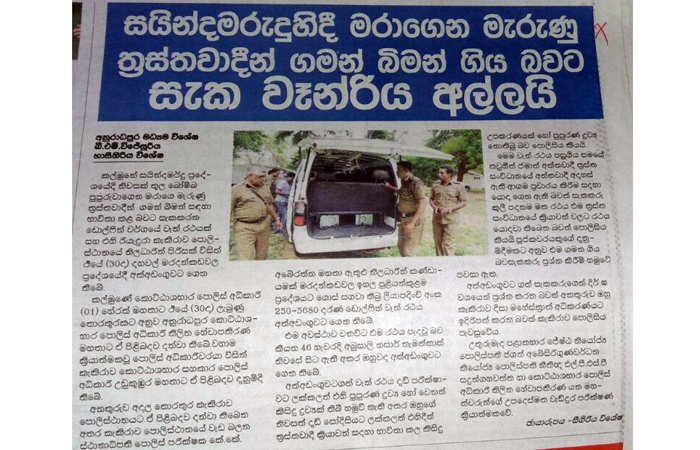(லங்காதீப, தினமின, திவயின, மவ்பிம, அத, டேய்லி நிவுஸ், த அயிலன்ட், டெயிலி மிறர், சிலோன் டுடே, வீரகேசரி, டெமில் மிரர், மெட்ரோ நிவுஸ், தினகரன், விடிவெள்ளி, தினகுரல்) |