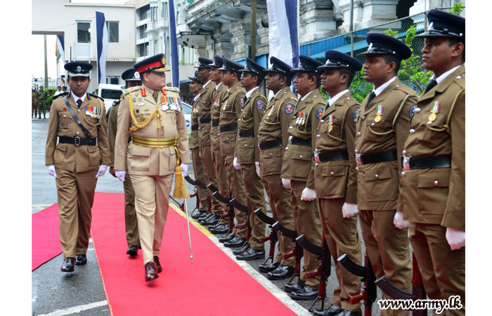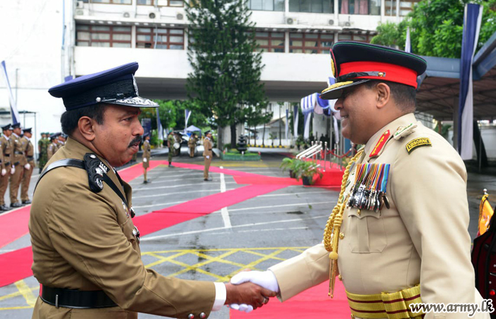 பொலிஸ் தலைமையகத்தில் இராணுவ தளபதிக்கு கௌரவ மரியாதைகள்