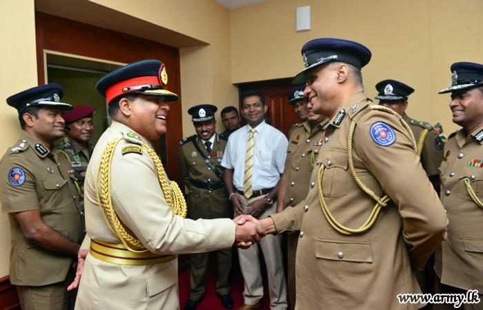 அங்கு சென்ற இராணுவ தளபதிக்கு பொலிஸ் தலைமையகத்தில் தலைமை பதவிகளிலுள்ள மூத்த பிரதிபொலிஸ் மாஅதிபர்களை பதில் பொலிஸ் மாஅதிபர் அறிமுகப்படுத்தி வைத்தார்.