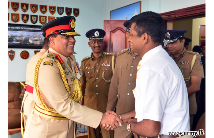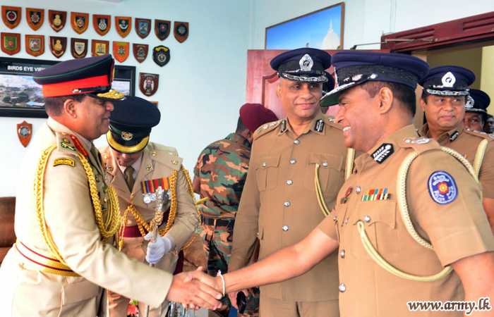 தலைமையகத்திற்கு வருகை தந்த இராணுவ தளபதி அவர்களுக்கு பொலிஸ் சம்பிரதாய முறைப்படி அணிவகுப்பு மரியாதைகள் வழங்கி கௌரவிக்கப்பட்டார். பின்பு பதில் பொலிஸ் மதஅதிபரின் பணிமனைக்கு இராணுவ தளபதி அழைத்துச் செல்லப்பட்டார்.