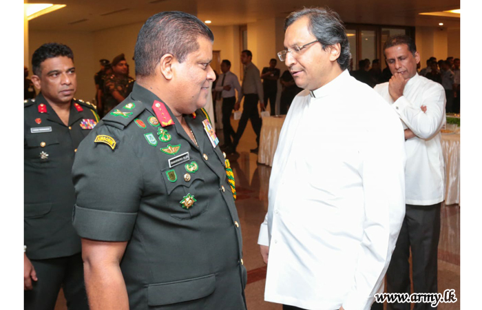 வருகை தந்ந அனைவரையூம் இராணுவ நிறைவேற்று பணிப்பாளர் நாயகம் மேஜர் ஜெனரல் சூல அபேநாயக்க மற்றும் ஆளனி நிருவாக பணிப்பாளர் பிரிகேடியர் பிரியந்த பிலப்பிட்டிய ஆகியோர் இணைந்து வரவேற்றதுடன் பதில் பாதுகாப்பு தலைமைப் பிரதானியும் இராணுவத் தளபதியுமான திரு ரவிநாத் ஆரியசிங்க அடம்மிரால் (ஓய்வு) கலாநிதி ஜயநாத்கொலம்பகே ஆகியோர் இருக்கும் இடத்திற்கு அழைத்துச் செல்லப்பட்டனர்.
