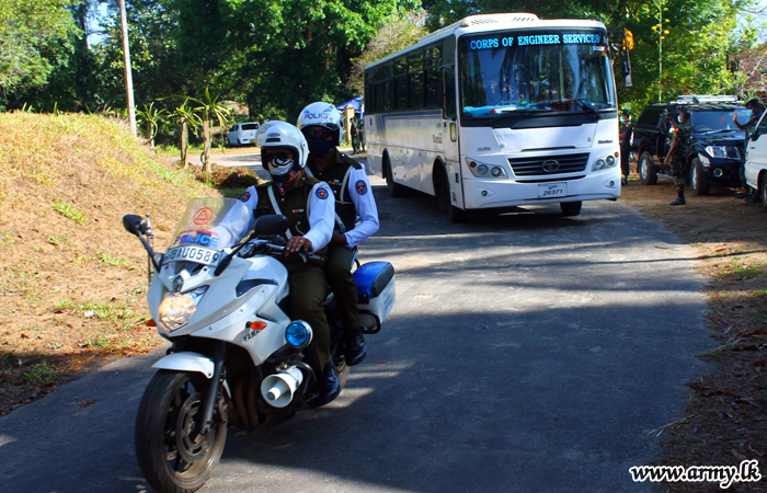 இராணுவத்தினால் வழங்கப்பட்ட போக்குவரத்து வசதிகளுடன் காலி,கொழும்பு,கண்டி,மஹியங்கன,கெக்கிராவை மற்றும் குருநாகல் ஆகிய பிரதேசங்களை நோக்கி புறப்பட்ட குறித்த குழுவினருக்கு படையினரால் சிற்றுண்டி உணவுகள், குடி நீர் மற்றும் மதிய உணவுப் பொதிகள் விஷேடமாக குழந்தைகள் மற்றும் சிறுவர்களை கருத்திற்கொண்டு வழங்கப்பட்டுள்ளன.