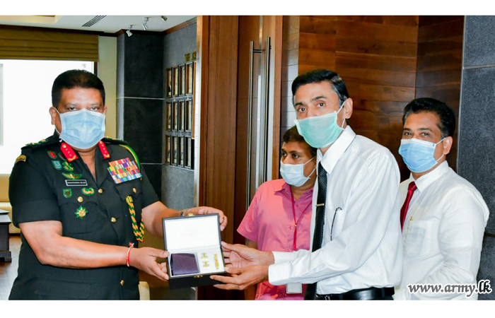 இலங்கை மின்சார உபகரண வர்த்தக சம்மேளன பிரதி நிதிக் குழுவினர் , பாதுகாப்பு தலைமைப் பிரதானியும் இராணுவத் தளபதியும் மற்றும் கோவிட்-19 எதிர்பாரா பரவலை தடுப்பதற்கான செயல்பாட்டு மையத்தின் தலைவருமான லெப்டினன் ஜெனரல் சவேந்திர சில்வா அவர்களை சில தினங்களுக்கு முன்னர் இராணுவத் தலைமையகத்தில் சந்தித்து, சுகாதார உபகரண இருப்புக்களை அன்பளிப்புச் செய்தனர்.