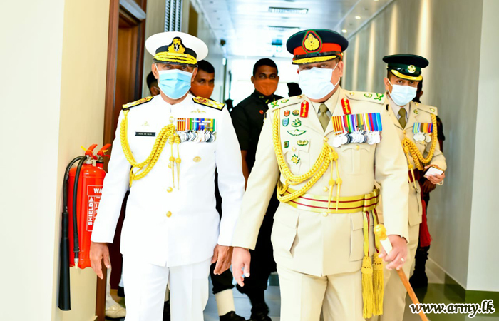 இராணுவ தளபதி பணிமனையில் கடற்படைத் தளபதி மற்றும் இராணுவ தளபதி அவர்களுக்கு இடையில் சந்திப்பொன்றும் இடம்பெற்றது. இதன்போது கடற்படைத் தளபதி ஆற்றிய பாரம்பரிய சேவையை கௌரவித்து இராணுவ தளபதி அவர்கள் வாழ்த்துக்களை தெரிவித்தார். பின்னர் கடற்படைத் தளபதியினால் கொவிட் – 19 தேசிய தடுப்பு நடவடிக்கை மையத்தின் தலைவரான இராணுவ தளபதி அவர்களின் வழிக்காட்டலின் கீழ் இரவு பகல் ஆற்றிய சேவைகளை கெளரவித்து இராணுவ தளபதிக்கு பாராட்டுக்களை தெரிவித்தார்.
