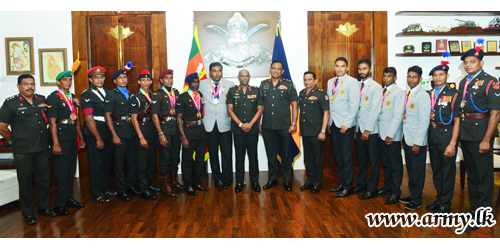 சர்வதேச விளையாட்டு போட்டிகளில் தமது சிறந்த திறமையை வெளிக்காட்டிய இராணுவத்தினர் இன்று காலை (25) இராணுவத் தளபதியான லெப்டினன்ட் ஜெனரல் மகேஷ் சேனாநாயக்க அவர்களை இராணுவத் தலைமையகத்தில் சந்தித்தனர்.