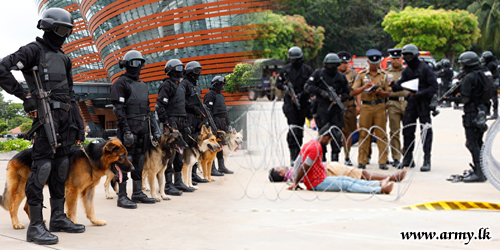 இராணுவத்தினரால் ஆரம்பிக்கப்பட்ட ‘நடவடிக்கை நீர்காகம்’ 2018 ஆம் ஆண்டிற்கான கூட்டுப்படை அப்பியாச பயிற்சியின் மேலும் ஒரு கட்ட பயிற்ச்சி கொழும்பில் அமைந்துள்ள நெலூம் பொகுன (தாமரை தடாக) வளாகத்தில் (20) ஆம் திகதி வியாழக் கிழமையன்று நடைப் பெற்றது. இப் பயிற்ச்சியில் எதிரிகளிடம் சிக்கி கொண்ட மக்களை தைரியமான முறையில் காப்பற்றும் நடவடிக்கைகள் மேற் கொள்ளப்பட்டனர்.
