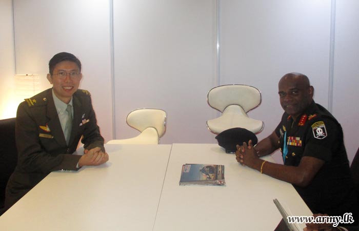 மலேசியாவில் நடைப் பெற்ற பாதுகாப்பு சேவை ஆசியா கண்காட்ச்சி 2018 க்கான தேசிய மாநாட்டில் கலந்து கொண்ட இலங்கை இராணுவ தளபதி லெப்டினென்ட் ஜெனரல் மகேஷ் சேனநாயக அவர்கள் சிங்கபூர் இராணுவ பிரதாணியான பிரிகேடியர் ஜெனரல் கோ ஸி ஹோ அவர்களை மலேசியா கோலலம்பூரில் (18) ஆம் திகதி சந்தித்தார்.