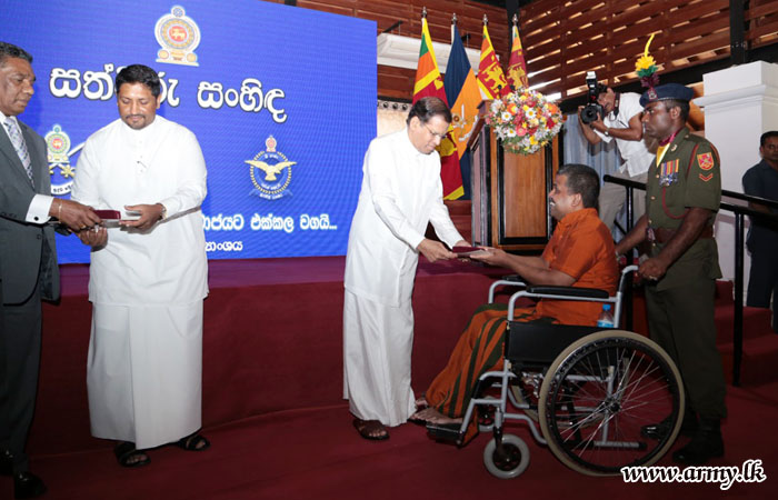 அங்கவீனமுற்ற படைவீரர்களுக்கு சத்விருசங்கிந்த அடிப்படையல் சான்றிதழ்கள் வழங்குதல்