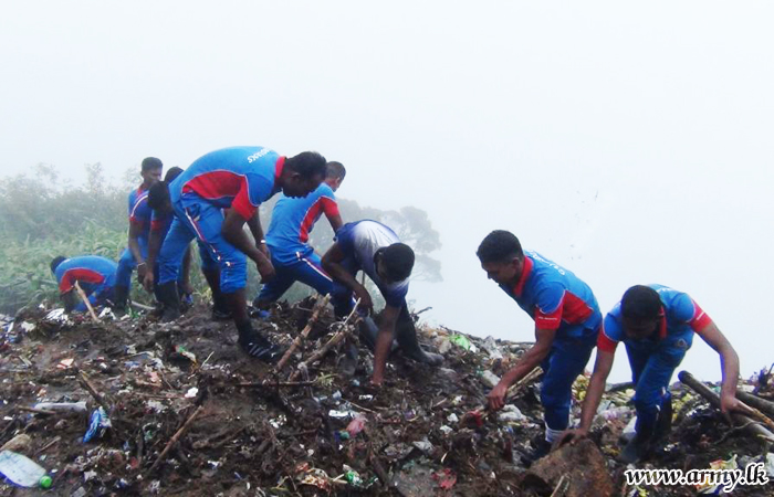 சிவனொலிபாதமலை வீதியில் சரிந்த குப்பை மேட்டை இராணுவத்தினர் அகற்றினர்