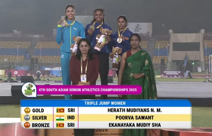 இந்தியாவின் ராஞ்சியில் 2025 ஒக்டோபர் 25 ஆம் திகதி நடைபெற்ற 4வது தெற்காசிய தடகள சாம்பியன்ஷிப் போட்டியில், இலங்கை இராணுவ விளையாட்டு வீரர்கள் சிறப்பான திறமையை வெளிப்படுத்தி பல பதக்கங்களை வென்று நாட்டிற்கும் இராணுவத்திற்கும் பெருமை சேர்த்துள்ளனர்.