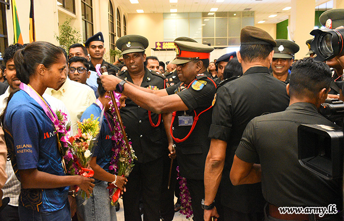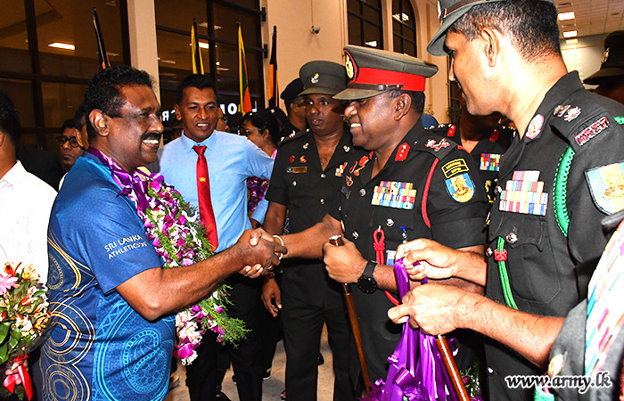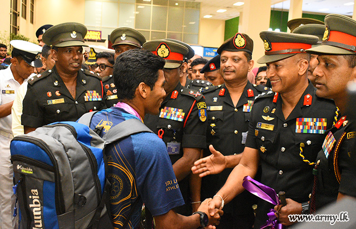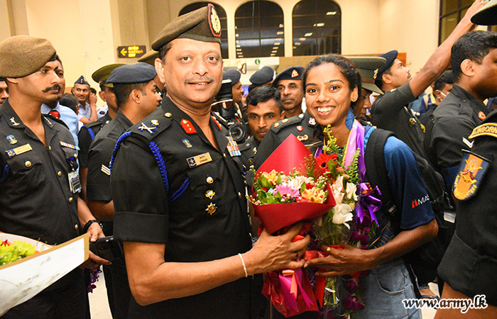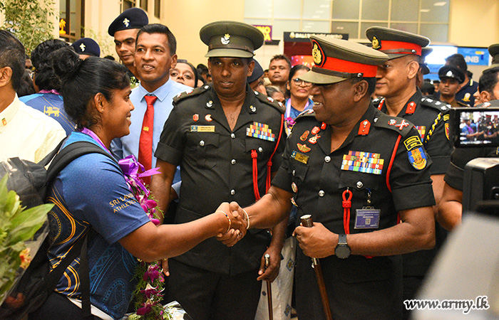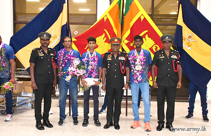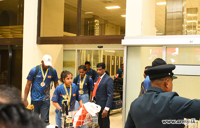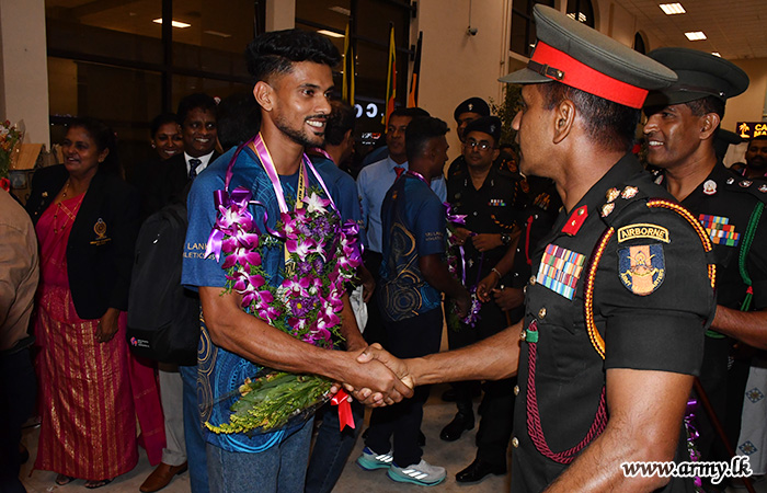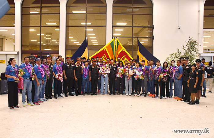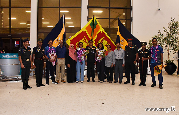 பண்டாரநாயக்க சர்வதேச விமான நிலையத்தை வந்தடைந்த அவர்களை, இளைஞர் விவகாரங்கள் மற்றும் விளையாட்டுத்துறை அமைச்சர் கௌரவ சுனில் குமார கமகே, சிரேஷ்ட இராணுவ அதிகாரிகள் மற்றும் குடும்ப உறுப்பினர்களுடன் இணைந்து அன்புடன் வரவேற்றார்.